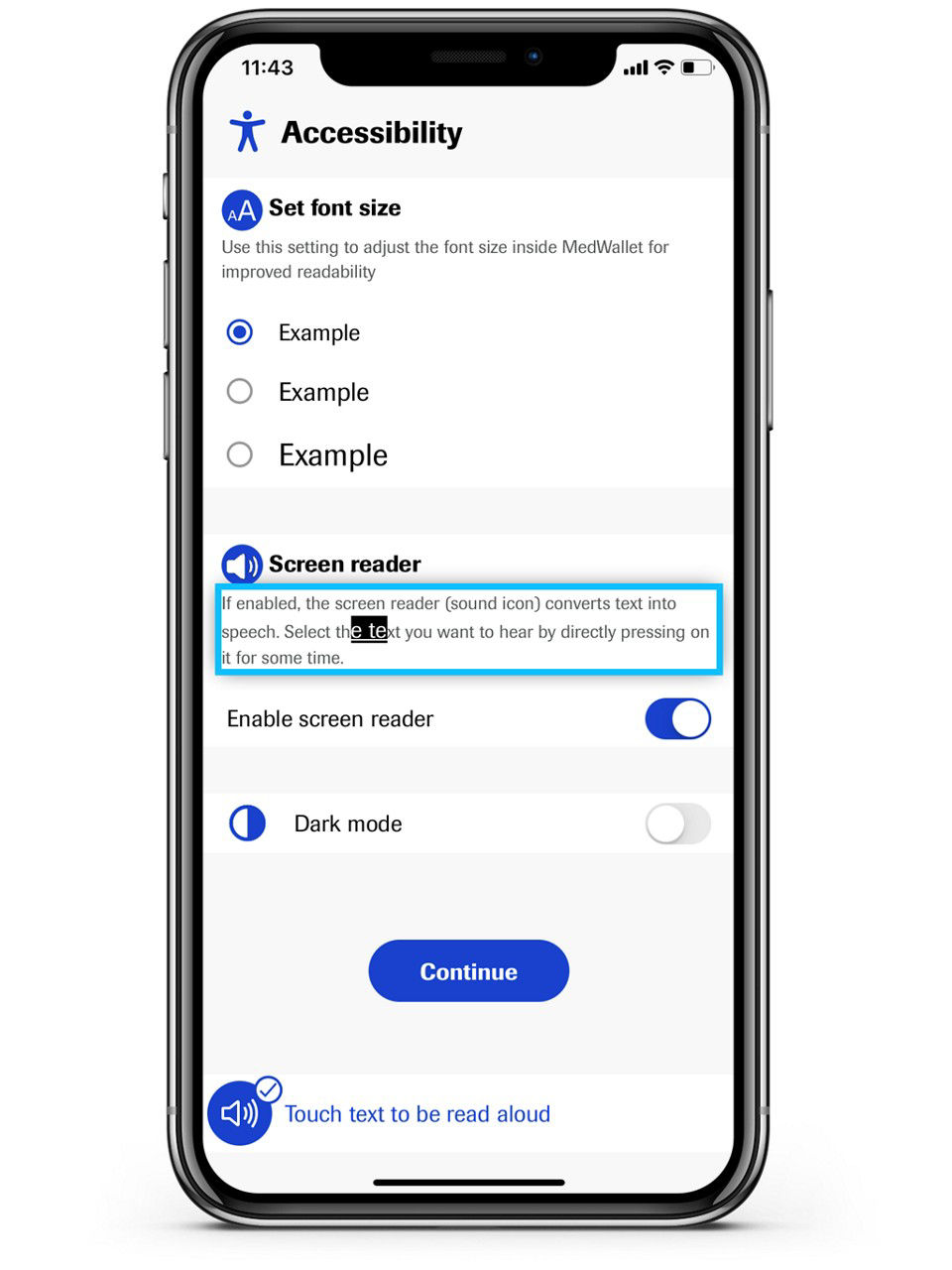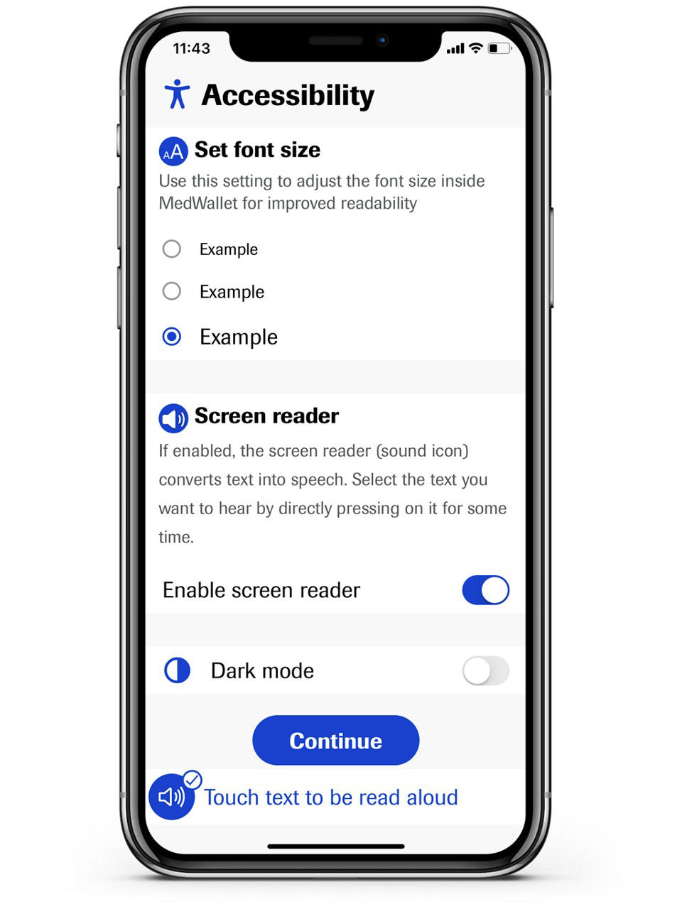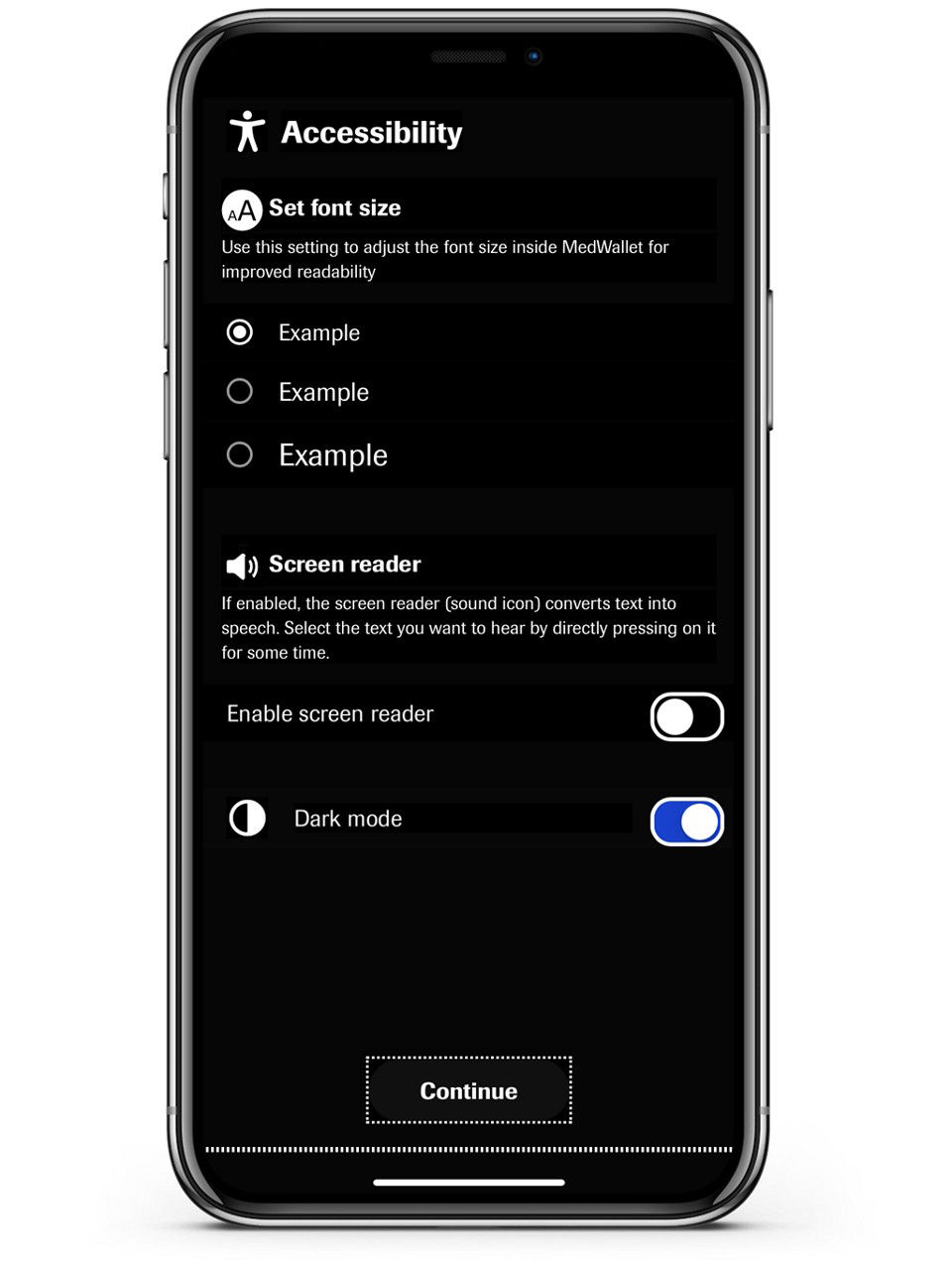 MedWallet has ACCESSIBILITY FEATURES to help display information that is more visible and readable to visually impaired people.